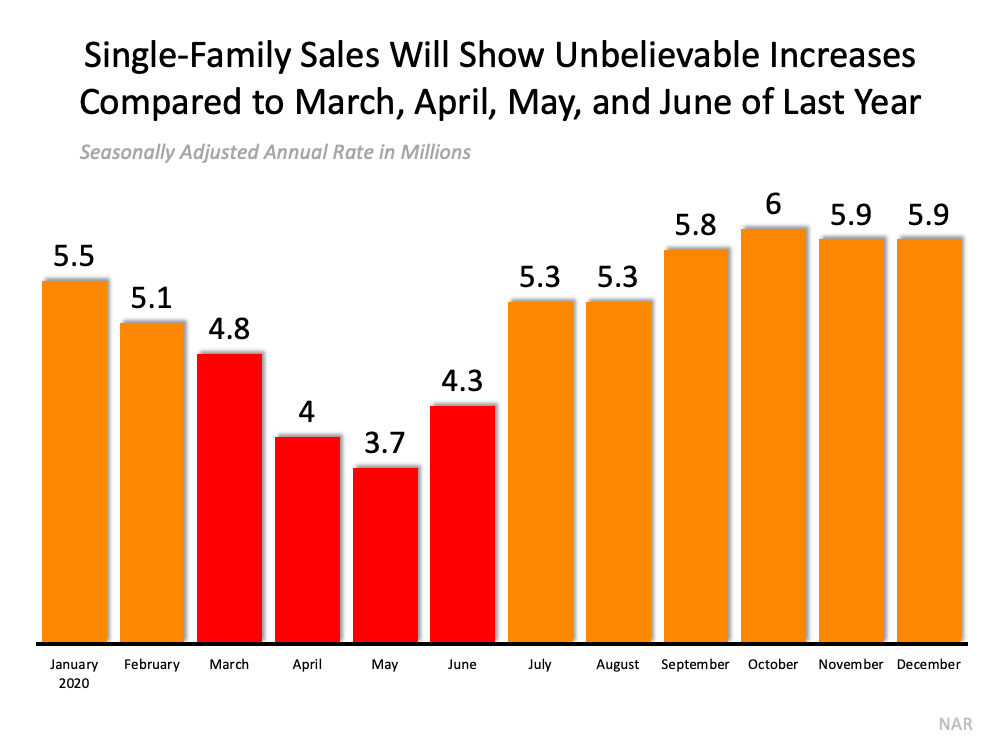 Don’t be impressed by the headlines reporting year-over-year housing numbers for the next several months (data covering March, April, May, and June). The data will most likely show eye-popping one-year increases.