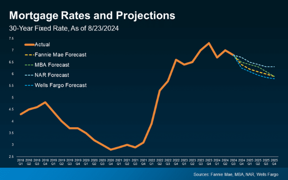 Here’s what experts in the industry project for mortgage rates through 2025. One contributing factor to this ongoing gradual decline is the anticipated cuts from the Fed. The graph below shows the latest forecasts from Fannie Mae, MBA, NAR, and Wells Fargo (see graph below):
