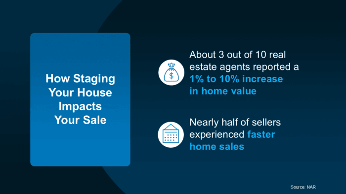 A lot of buyers can use the agent’s know-how as the only staging advice they need. But, if your home needs more of a transformation, or it’s empty and could benefit from rented furniture, a great agent will be able to determine if bringing in a professional stager might be a good idea, too. Just know that level of help comes with a higher price tag. NAR reports: