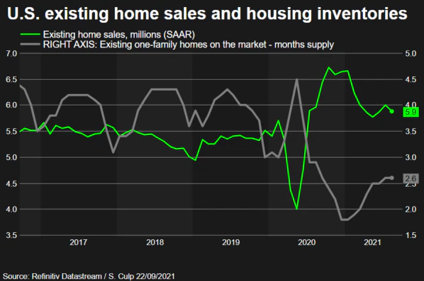 “The recent moderation in existing home sales reflects some easing of the buying frenzy that carried over into early 2021,” said Mark Vitner, a senior economist at Wells Fargo in Charlotte North Carolina. “The frantic race for space sent prices soaring. We continue to expect the housing market to move back into balance over the next couple of years.”